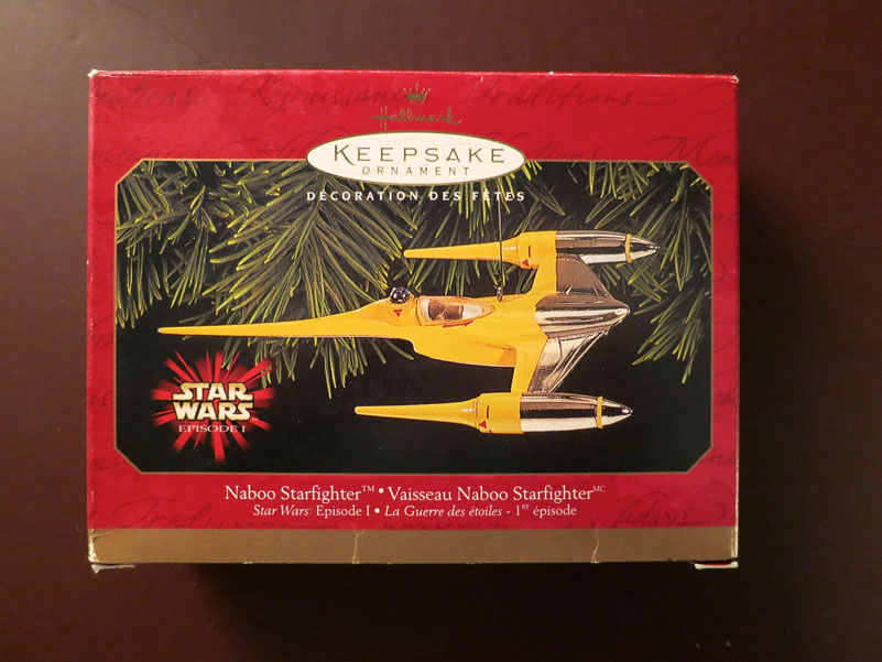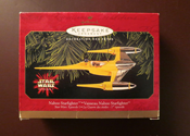 Anakin's sleek Naboo Starfighter (complete with the young pilot and R2-D2 in his astromech compartment behind the cockpit) in bright yellow and silver and measures 5.5" long and 3.5" wide, sculpted by Chris Webb.