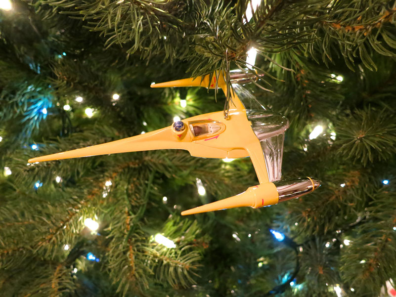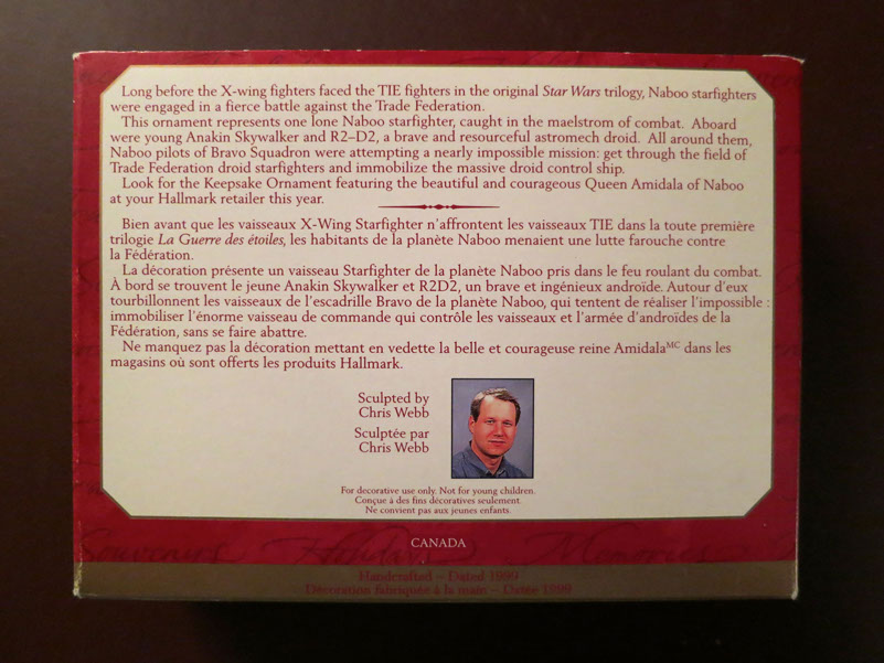 Anakin's sleek Naboo Starfighter (complete with the young pilot and R2-D2 in his astromech compartment behind the cockpit) in bright yellow and silver and measures 5.5" long and 3.5" wide, sculpted by Chris Webb.